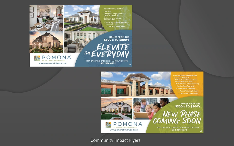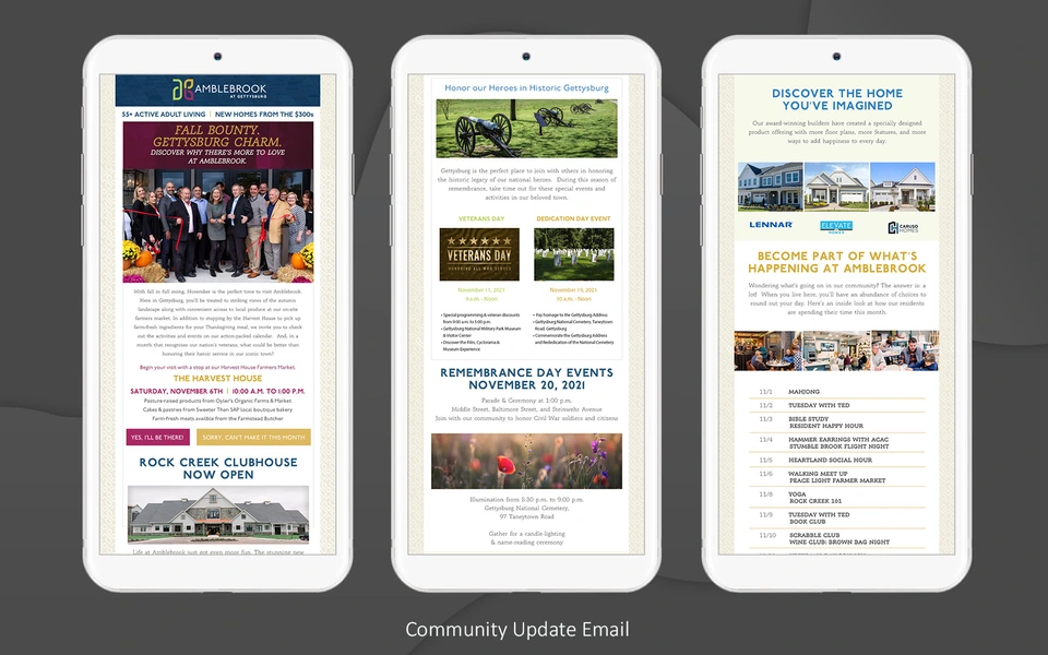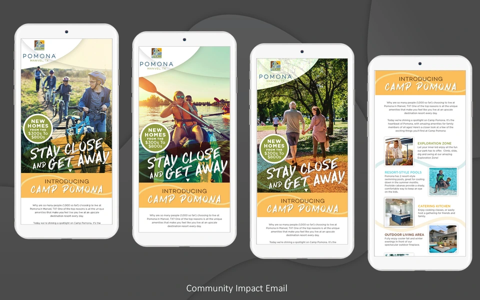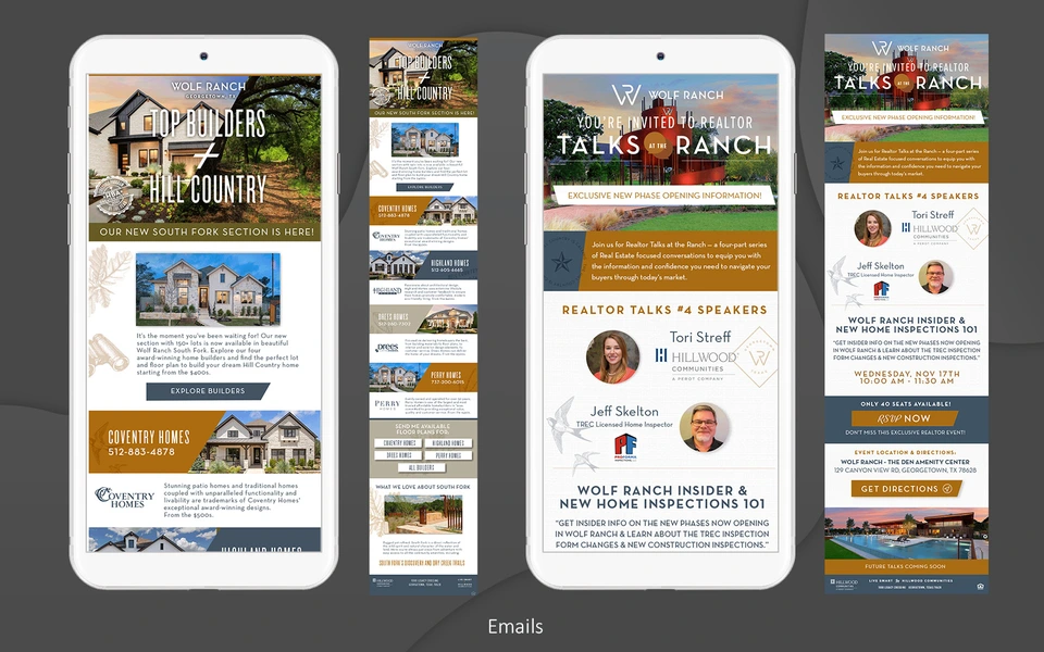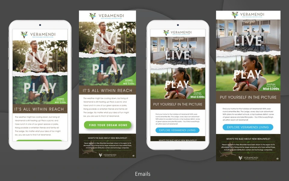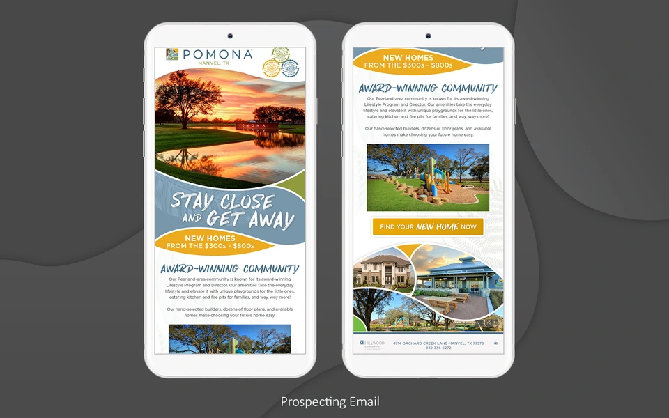 Aligning your brand to your vision takes center stage. We help you define the right look and messaging to ensure that your marketing tells your story in the most impactful way, and most importantly, enable you to standout in saturated markets. Your brand is your identity, which is why it’s so important to ensure consistency throughout your marketing with imagery, messaging, and storytelling to attract the ideal home buyers to your website, model homes and communities.