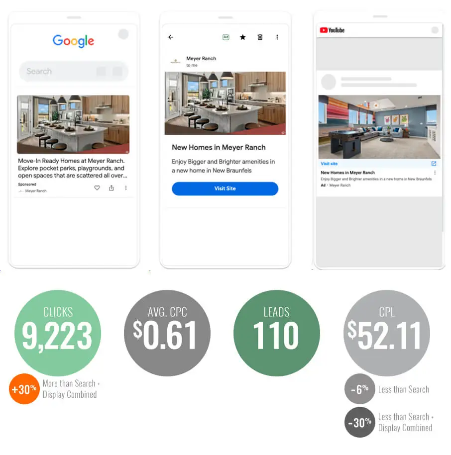 There are a range of creative formats available for your Demand Gen campaign, each tailored to showcase your unique offerings in compelling ways. Options for Single Image ads to crisply highlight key features of your community or model homes, presenting them in a visually engaging manner. Carousel Ads are exceptionally effective for developers looking to individually showcase each home builder or the diverse amenities within the community, providing a panoramic view of options to potential buyers. Video Ads offer an immersive experience, delivering a comprehensive visual tour of home communities or model homes, capturing nuances that static images simply can’t convey.