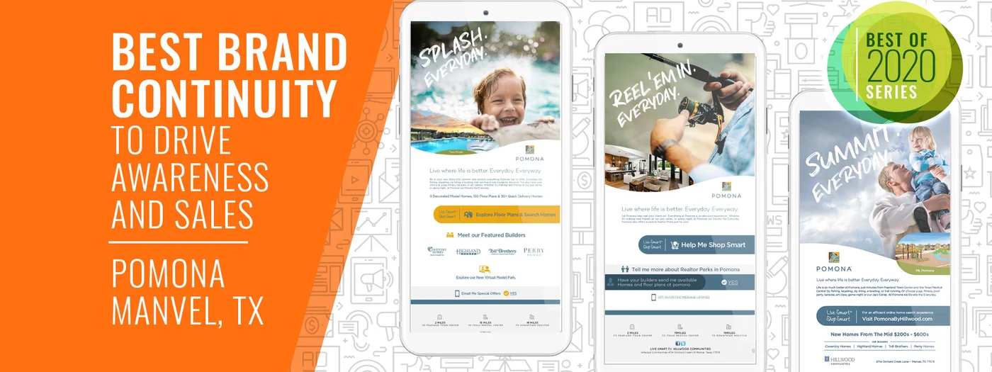Each week, we are sharing one of our favorite success stories that showcase our creative energy at work, helping our home builder and real estate clients meet the demands of the ever‑changing market dynamics to sell more homes. This week, we spotlight Pomona by Hillwood master‑planned community’s ad campaign from our Best of 2020.