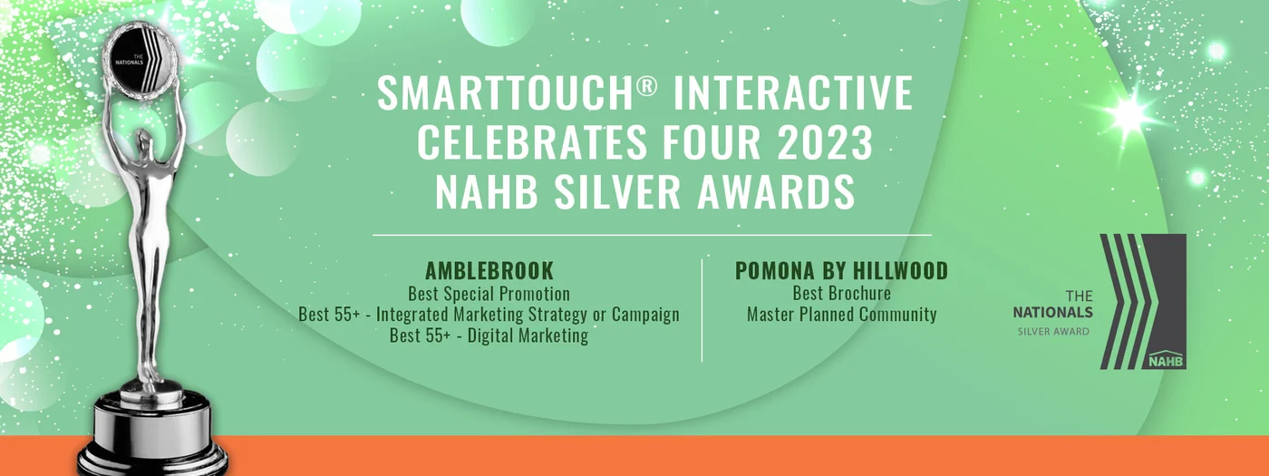 Austin, TX – December 14, 2023 – SmartTouch® Interactive, an award‑winning interactive full service real estate marketing agency and only one to provide its own new home marketing CRM solution, announced that it received four 2023 National Silver Awards from the National Association of Home Builders. Silver Award winners are the top vote recipients in each category and finalists for The Nationals Gold Awards. All Gold Winners will be announced at the Caesars Palace Ballroom in Las Vegas at the NAHB International Builders Show 2024 Awards Ceremony on Tuesday, February 27, 2024.