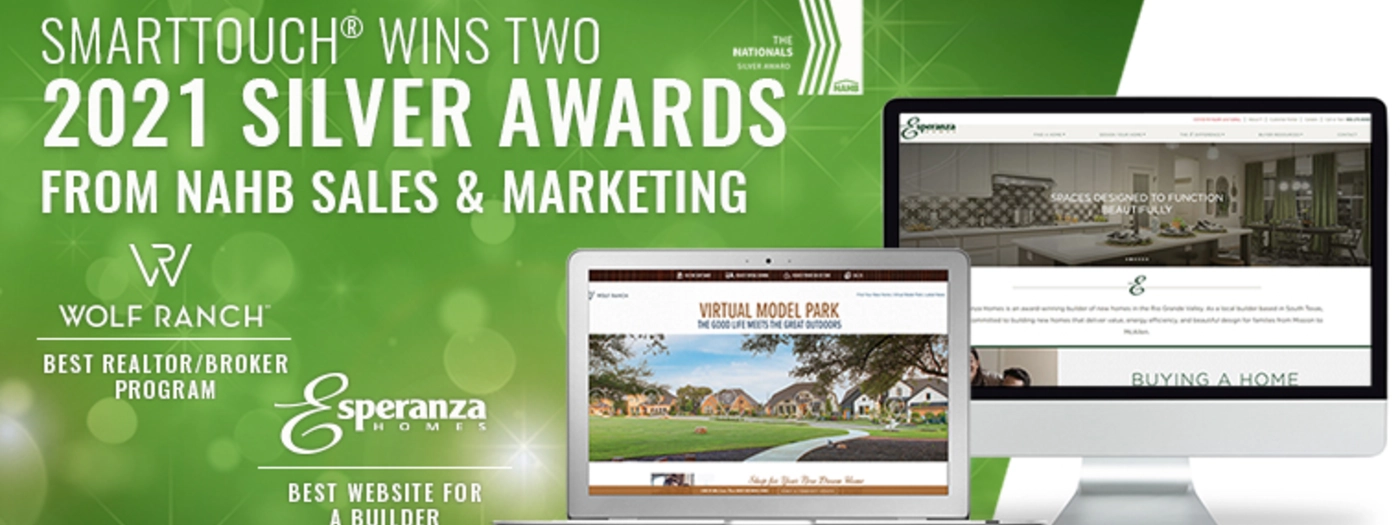 Austin, TX – January 21, 2020 – SmartTouch® Interactive, an award‑winning interactive real estate marketing agency, real estate marketing automation and lead nurturing CRM solution company announced today NAHB’s National Sales and Marketing Council (NSMC) has named the 2021 Silver Award Winners for The Nationals new home sales and marketing awards. Home builders, developers, associates and consultants. SmartTouch Interactive received Silver Award honors for Best Website for a Builder for Esperanza Homes and Best Realtor/Broker Program for Wolf Ranch.