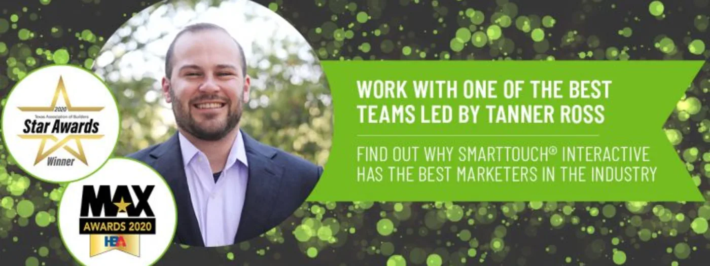 Austin, TX – September 2 , 2020 – SmartTouch® Interactive, an award‑winning interactive real estate marketing agency, real estate marketing automation and lead nurturing CRM solution company announced today a number of local and state awards citing top recognition as a real estate marketing agency and for Tanner Ross, Vice President of Marketing for SmartTouch® Interactive, who has been recognized for his outstanding leadership serving the home builder and real estate developer market place. SmartTouch Interactive has received multiple new awards this summer including: