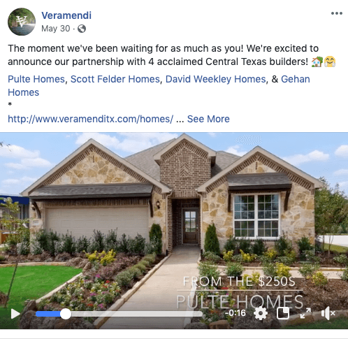 As a home builder or developer, you may be tempted to post your available homes and floor plans over and over and over again. But resist the urge. Facebook is not a listing site. A homebuyer does not go to Facebook and set filters to search for homes in the Austin area with 3‑4 bedrooms and 2‑4 baths for under $500,000. They visit your Facebook page to learn more about who you are as a builder, the amenities and lifestyle you’ll provide, the culture, the buyer experience, etc.